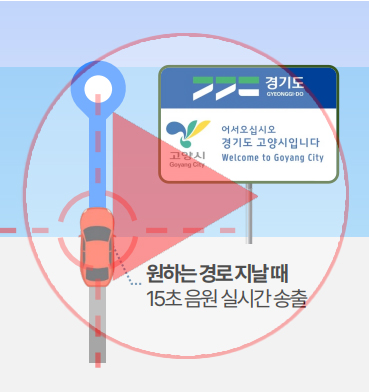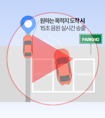 실시간 위치 타겟팅으로 목적지 도착 및 특정 경로를 지날때 음성안내가 노출됩니다